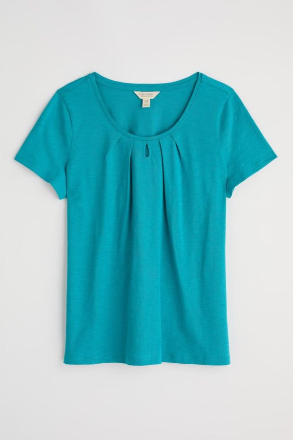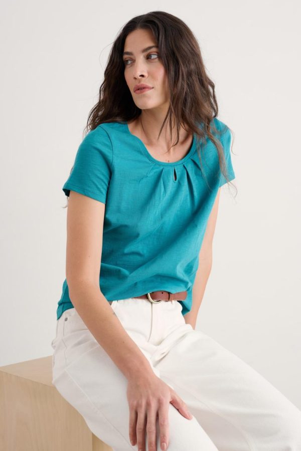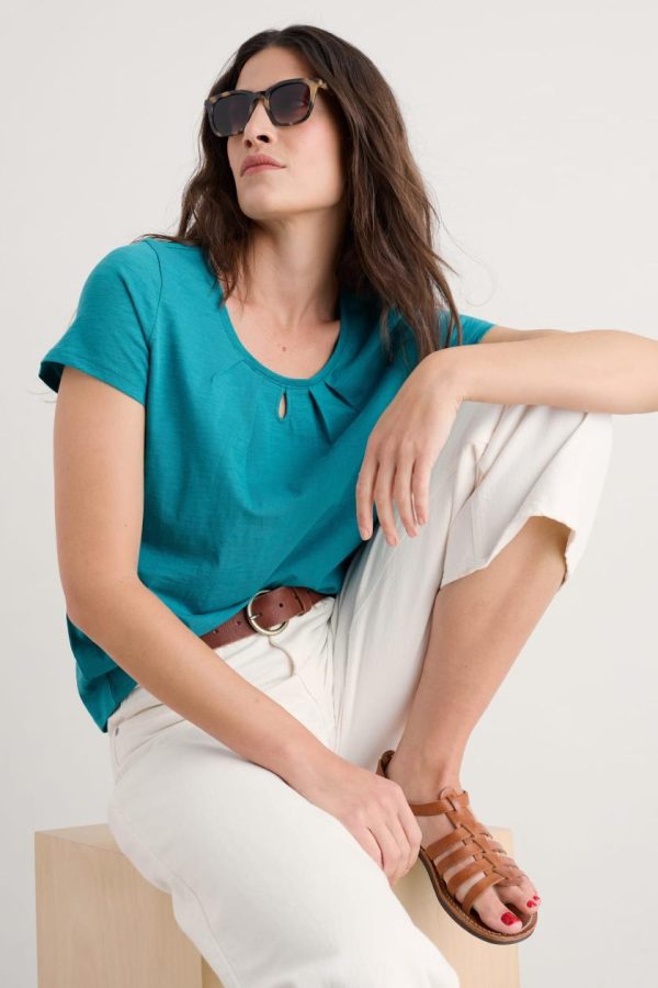 As comfortable as a T-Shirt, with elevated details. This easy-to-wear summery scoop neck jersey top has pintucks and a keyhole detail at the neckline. Perfect with denim or linen crops.