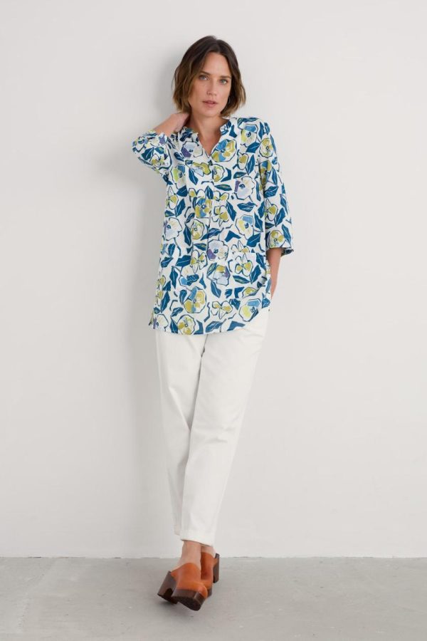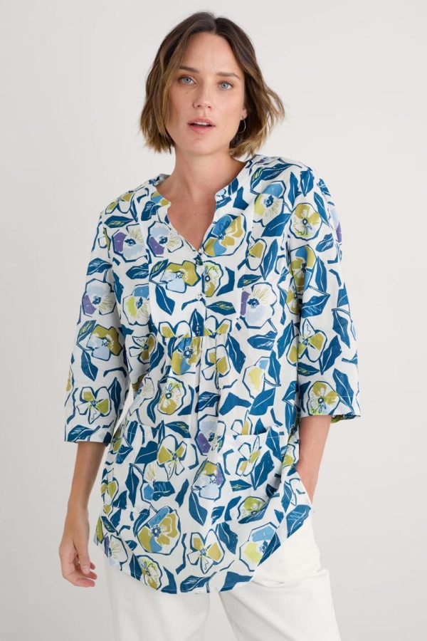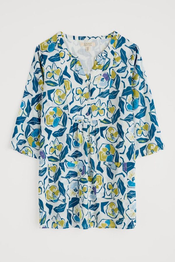 Made from lightweight cotton voile in a unique Seasalt print, our Aventurier Tunic is cut in a loose-fitting smock style, making it super comfortable and cool when the weather warms up. It has 3/4 length sleeves, a pretty notched V-neck and two large patch pockets at the front. We think it looks great with leggings and colourful leather sandals. With organic cotton certified according to Global Organic Textile Standards by Soil Association. License Number: DK17684