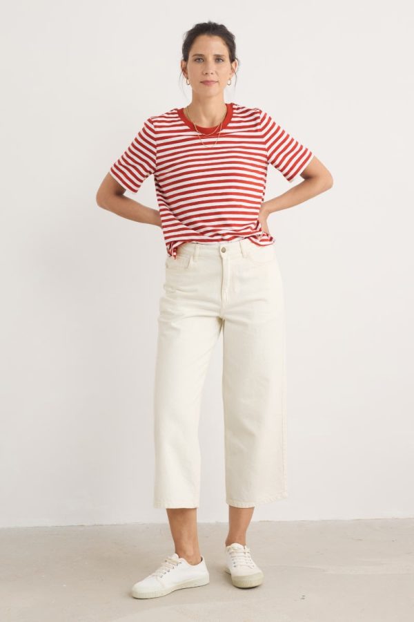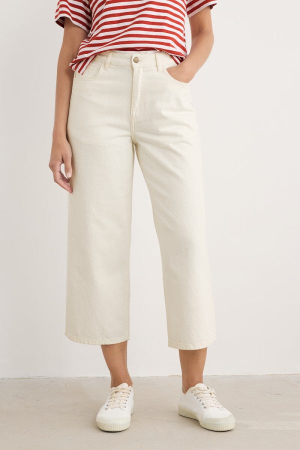 Our favourite crop jean with a wide leg for easy, contemporary style. Designed with a flattering mid-rise waist for a comfortable fit and classic 5-pocket detailing. Crafted from soft, premium organic cotton, this versatile everyday staple is perfect for summer or paired with boots for colder days.