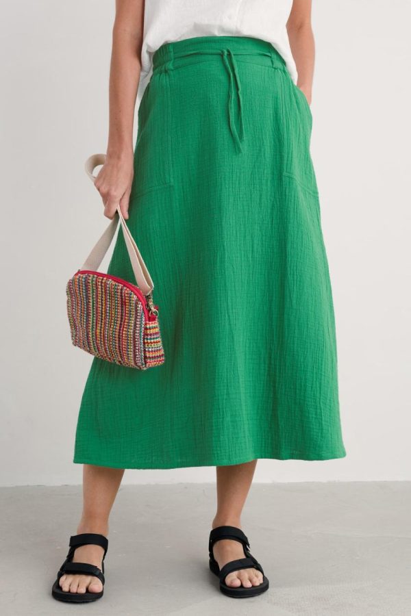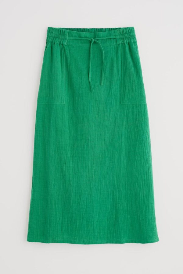 Lightweight, loose and airy, the ankle length Bee Orchid Skirt is the perfect summer skirt. Made with organic cotton, the skirt has a relaxed straight fit with side slits at the hem for added movement. The deep waistband is elasticated for comfort, with an adjustable drawstring to get just the right fit. Finished with deep patch pockets.
