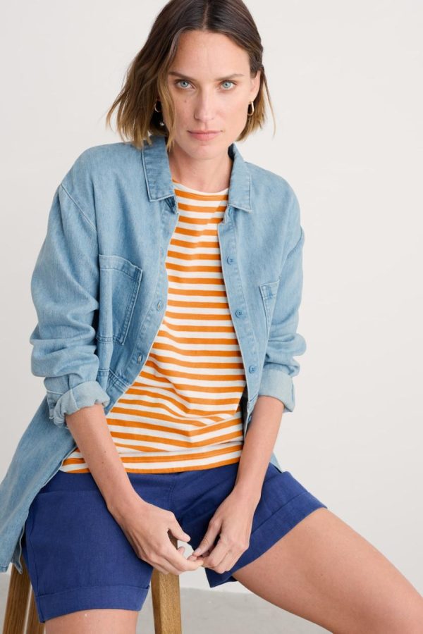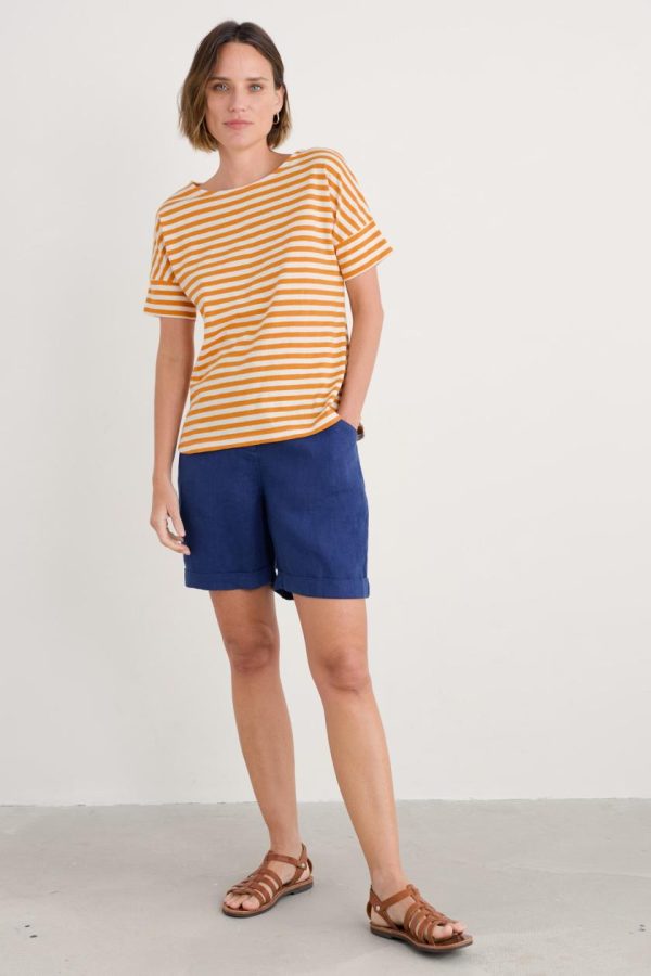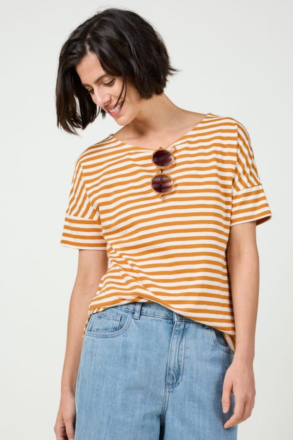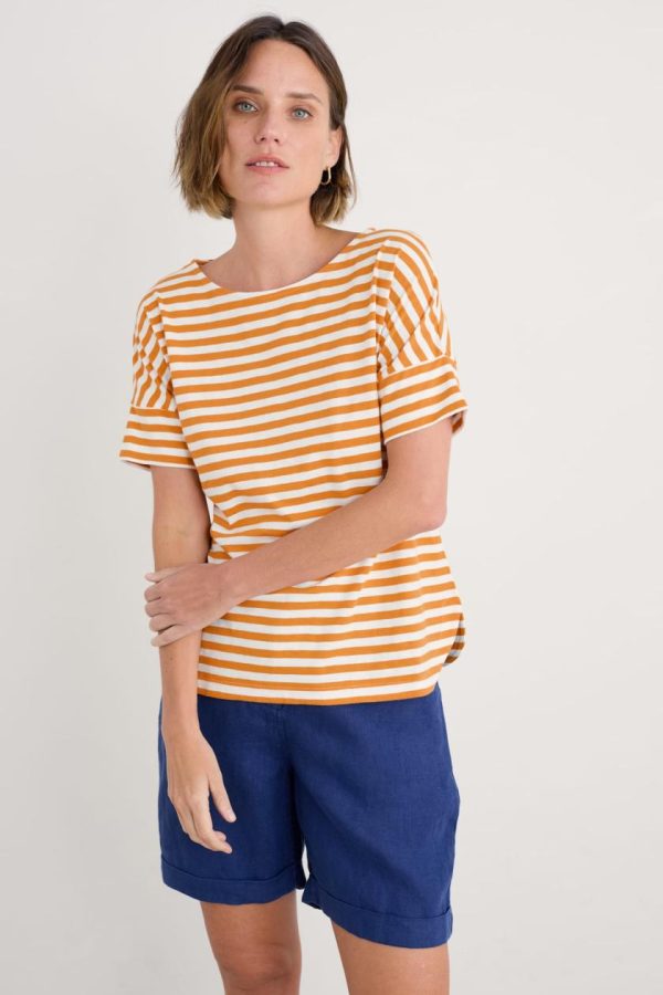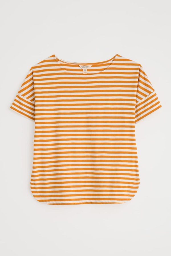 A casual T-shirt with a boat neck, made from a organic cotton jersey slub in colours that pair perfectly with our summer collection. The curved hem makes it perfect for wearing untucked, while its easy fit gives outfits a contemporary edge when it’s worn tucked in.