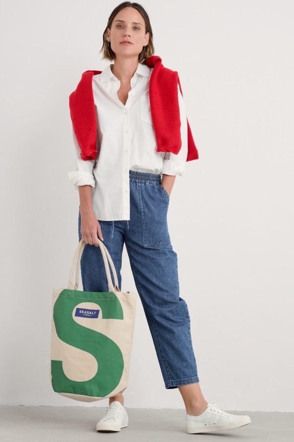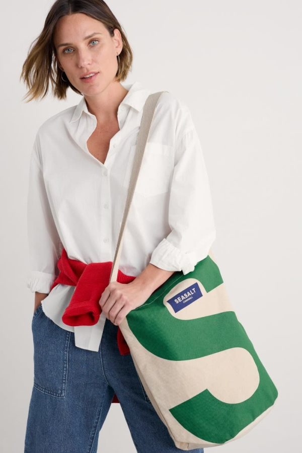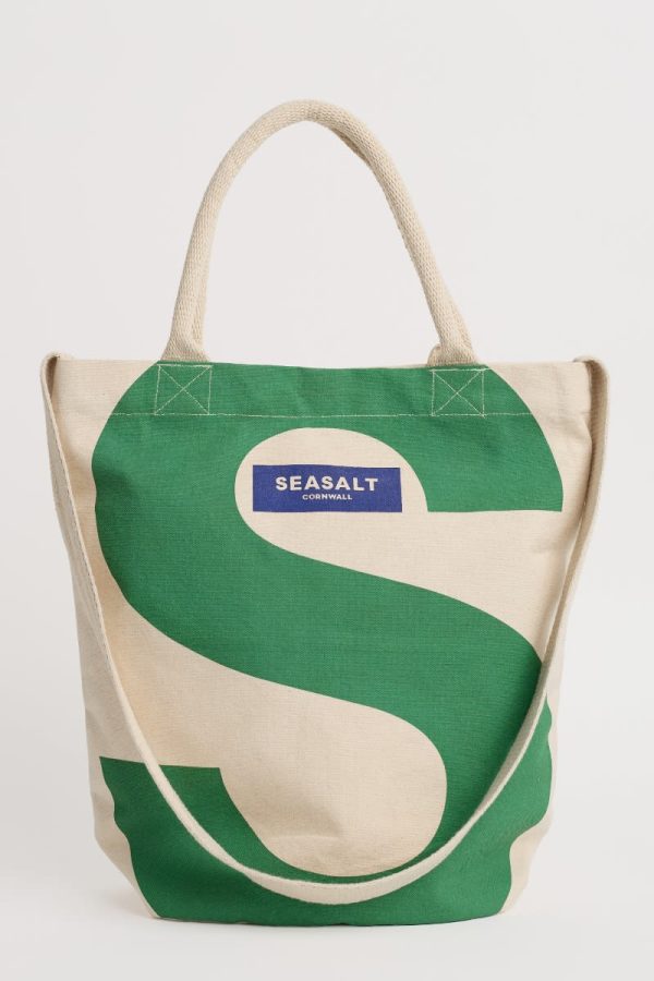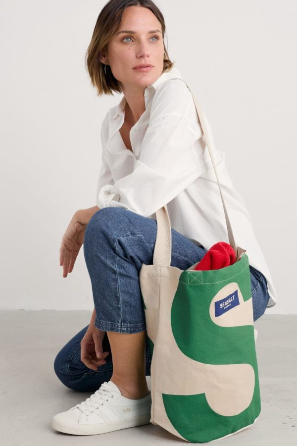 Our new Seasalt canvas tote bag features a bold capital S in a vibrant green colour. It’s made from unlined 12oz woven organic cotton, with a padded webbed cotton carry handle and shoulder strap. The main compartment fastens with a magnetic closure, and inside, there’s a useful slip pocket to hold smaller items.