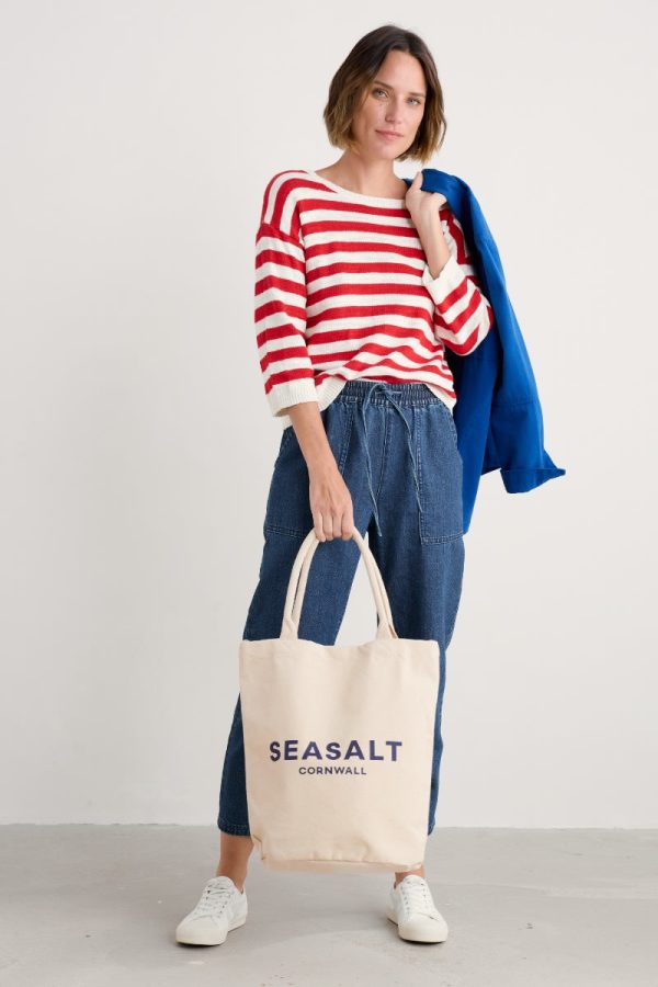 Meet your new take-anywhere bag. Our Seasalt canvas tote bag is made from robust 12oz woven organic cotton and features our logo on both sides. Carry it with the comfy padded handle or wear it over your shoulder with the longer strap. The unlined main compartment fastens with a magnetic closure, and inside, you’ll find a handy slip pocket for those smaller essentials.
