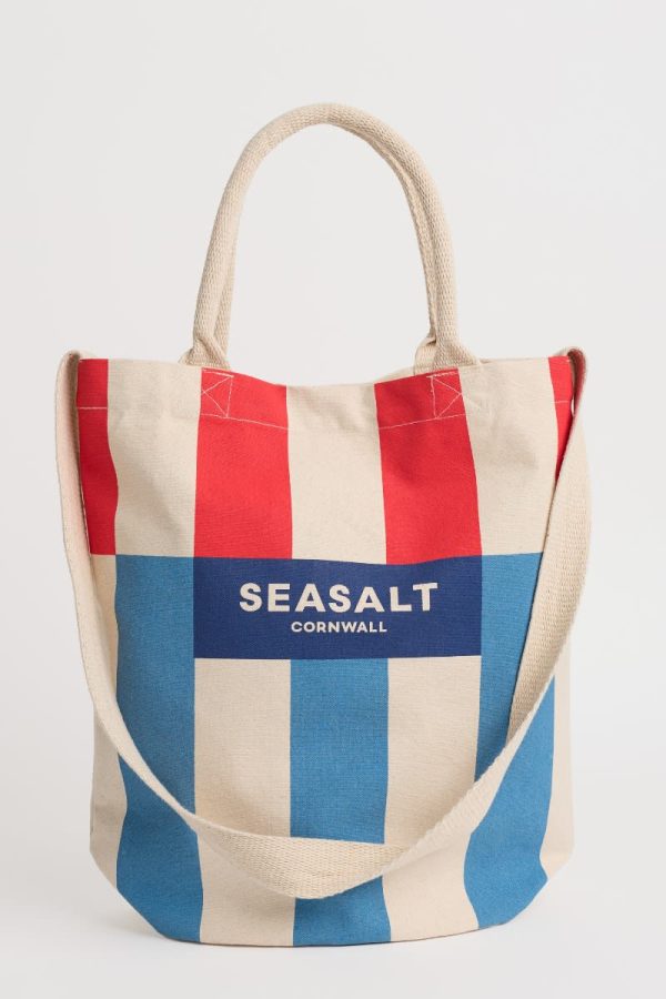 A handy everyday bag featuring a vibrant design of split stripes. Our new canvas tote bag is made from robust 12oz woven organic cotton and features our logo on both sides. The unlined compartment fastens with a magnetic closure, and there’s a useful slip pocket inside. Wear it over your shoulder with the strap or carry it with the padded handle.