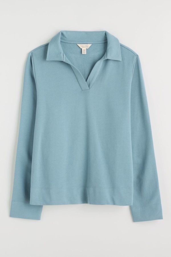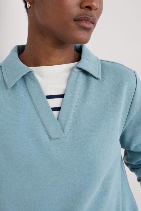 A simple, elegant sweatshirt with clean lines, minimal detailing and an open V-neck collar. Made from brush back cotton for a soft and cosy feel, in a bright colour to warm your day.