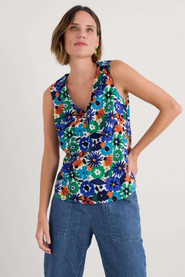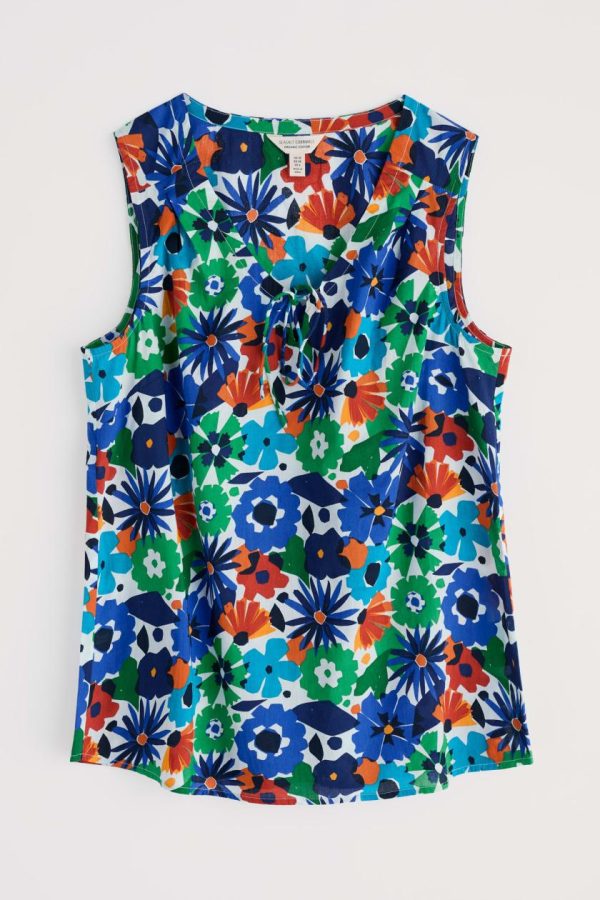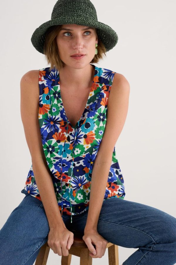 A cool and airy sleeveless top in a fresh Seasalt print. Our Cobbs Well Top has a pretty V-neck with keyhole detail and fine rouleau ties. Team it with linen crops and colourful flat leather sandals for effortless summer style.