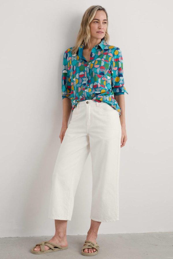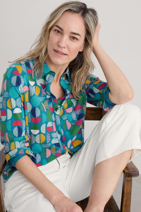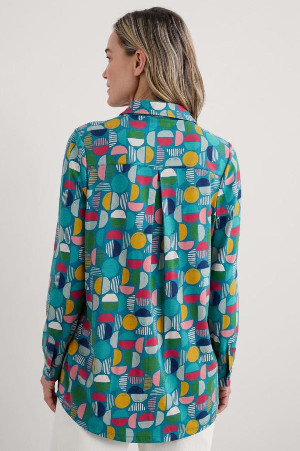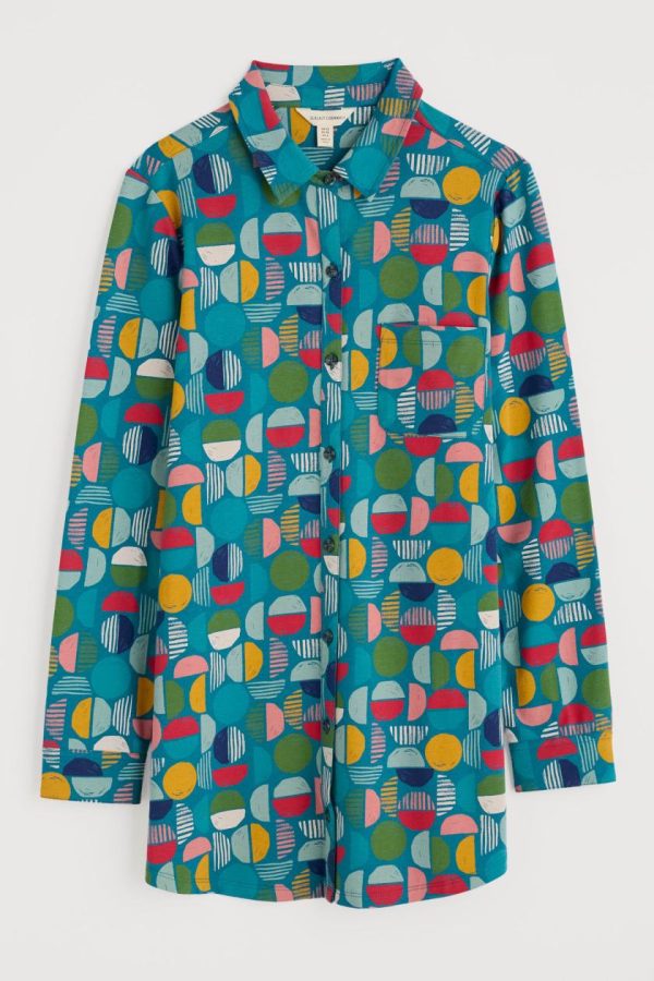 A shirt-style tunic made from soft and supple jersey, featuring an original print from our Cornish studios. It has an easy fit through the body towards the curved hem. The collar and chest pocket add neat little touches, with matching buttons on the placket and cuffs.