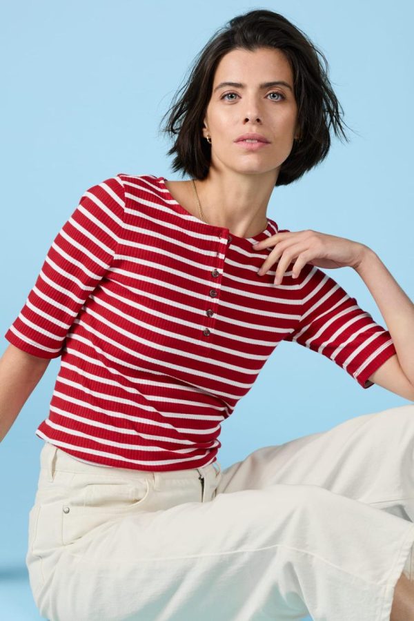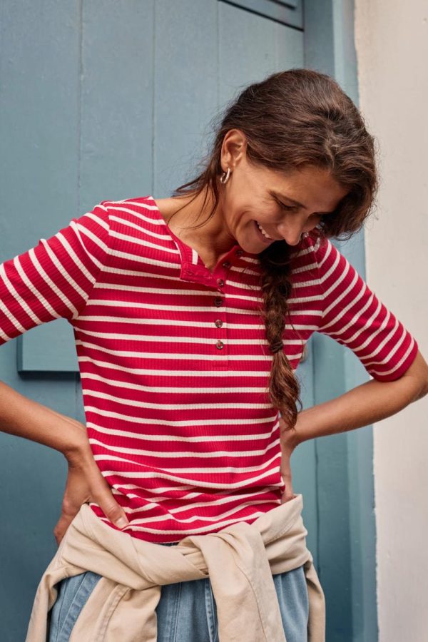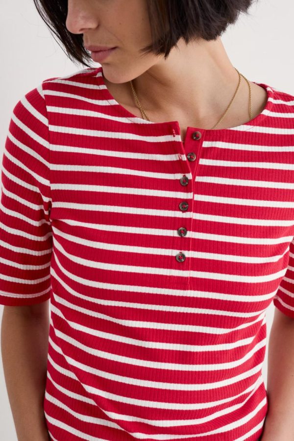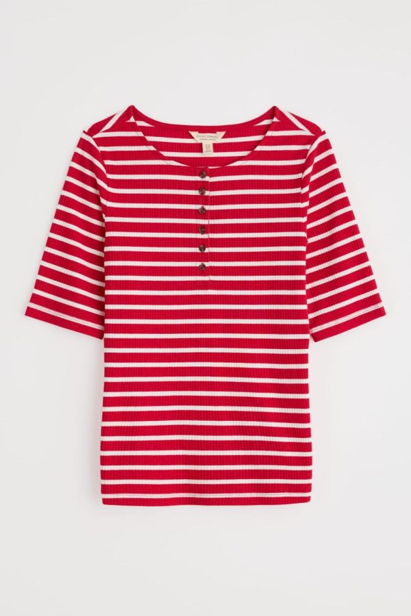 Seasalt Cornwall Early Orchid Ribbed Henley Top | Women T-Shirts