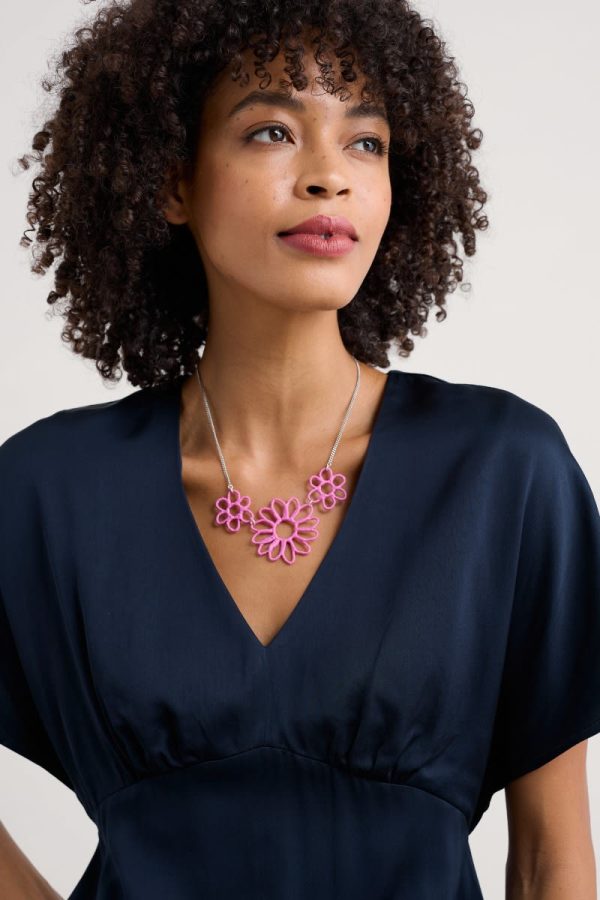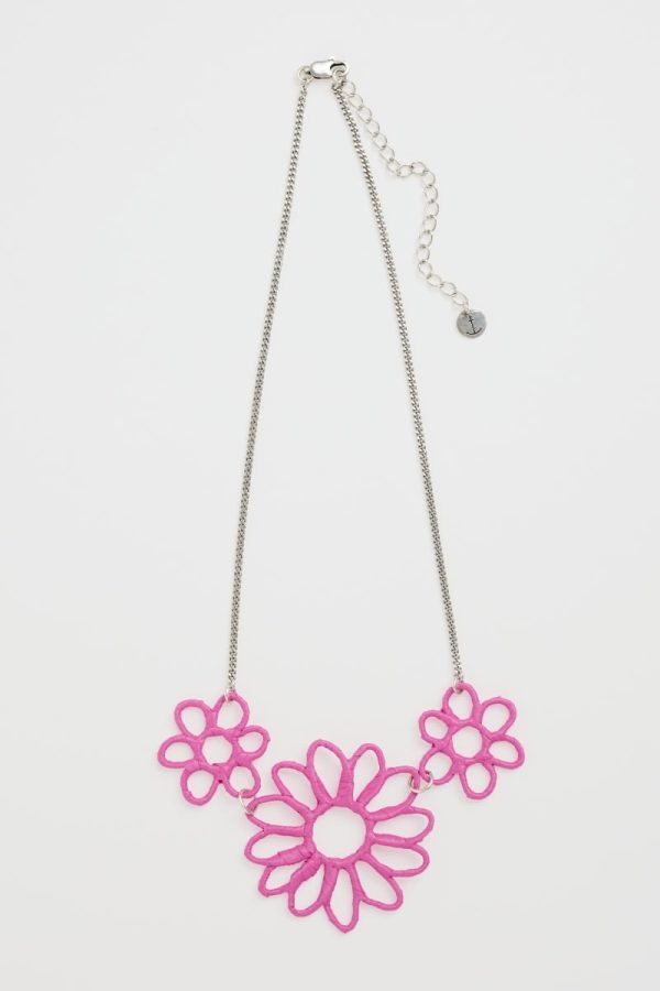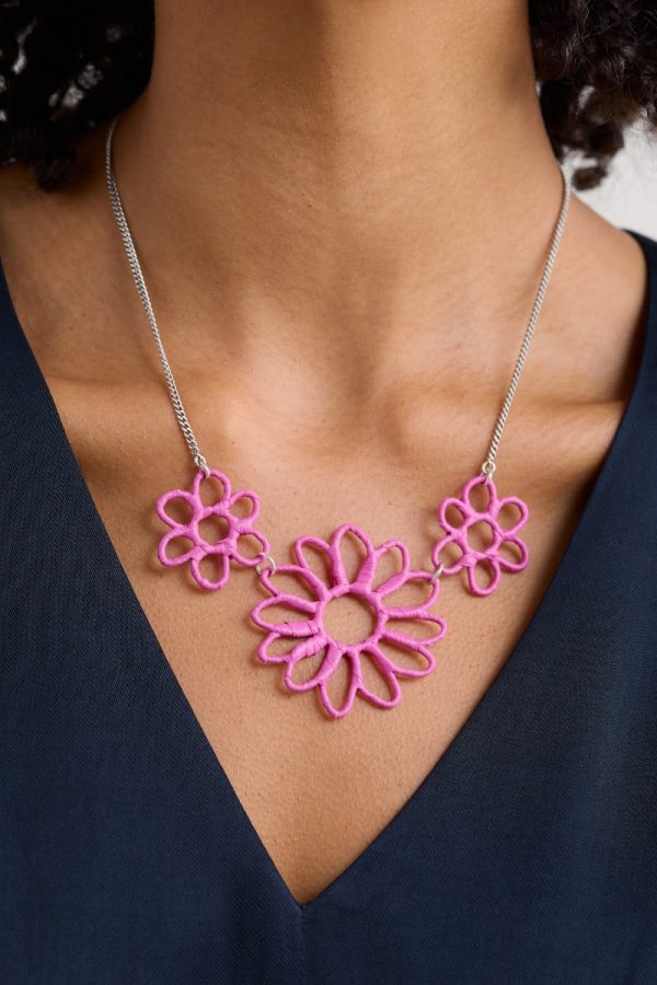 Our Flowering Rush necklace features a trio of beautiful blooms, crafted from shaped wire wrapped in colourful paper. They’re presented on a silver-tone chain, which can be adjusted in length to suit your outfit. On a bold scale, the necklace can be worn as a stand-alone statement piece or teamed with the matching earrings to maximise flower power.