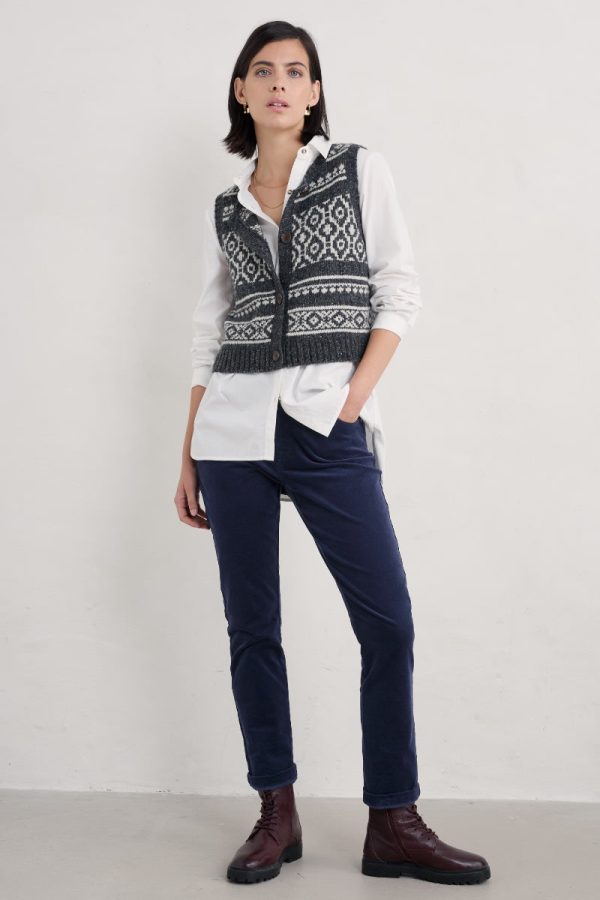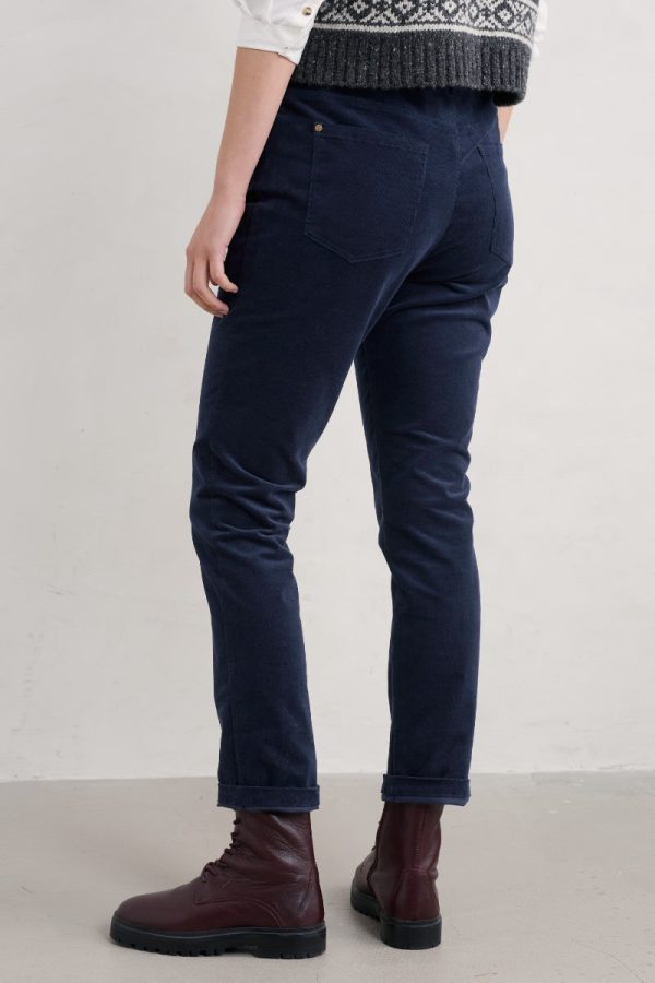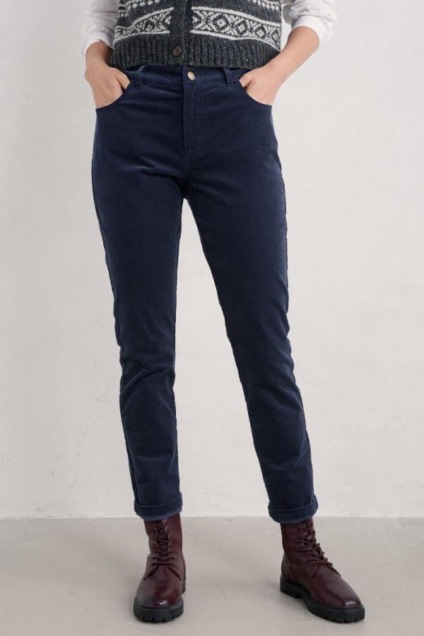 Beautifully soft Seasalt cord trousers. We’ve given our Lamledra Trousers a flattering slim fit through the leg, with a hint of stretch. With classic jeans styling, zip fly, front and back pockets and anchor branded rivets. A wardrobe essential for cooler days. Sizes 18-26 feature an extra comfy, elasticated back waistband. Choice of three lengths.