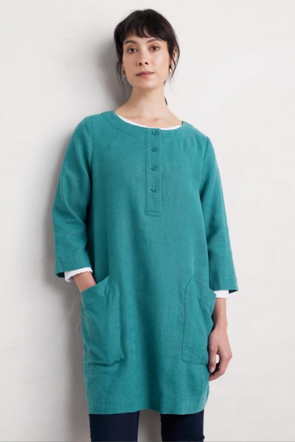One of our longer tunics, with a button-down front placket and an easy skimming shape. The blend of ramie and organic cotton has a subtle linen-like texture, which is perfect for the garment-dyeing process. The tunic is left with subtle tonal variations that will soften and develop more character with every season.