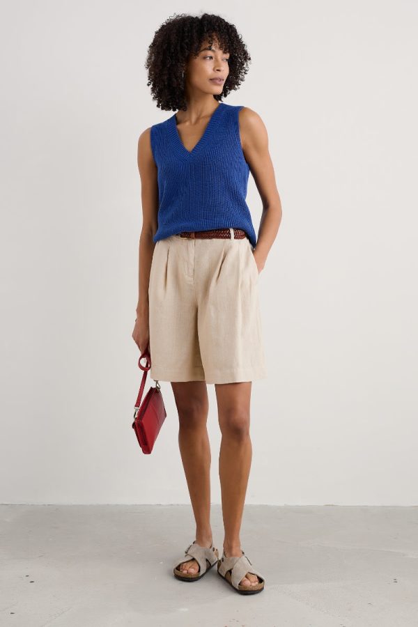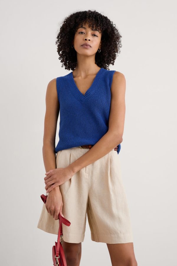 An instant update to summer outfits, made from soft and breathable organic cotton. Wear our V-neck knitted vest on its own, or layer over dresses, T-shirts and shirts; the cardigan stitching and ribbed hems add texture and depth, and light warmth on long, balmy evenings.