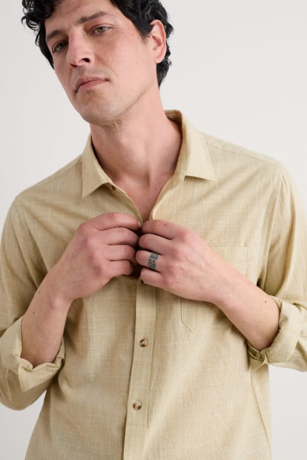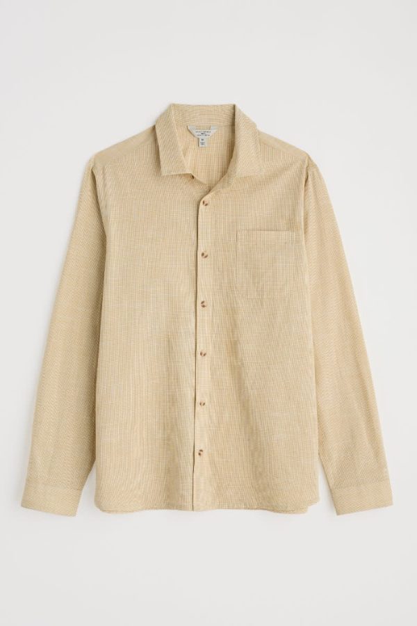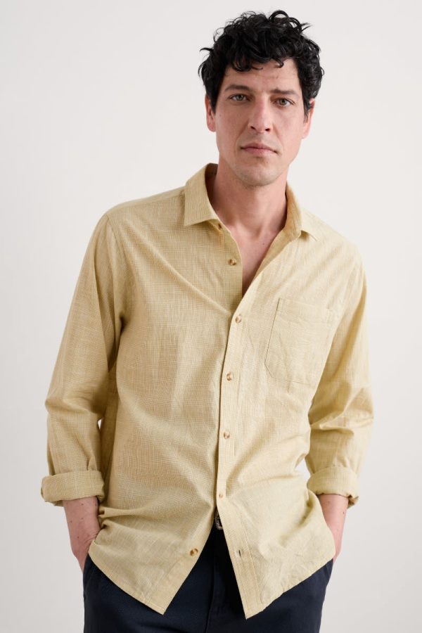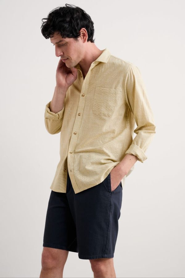 Our long-sleeve Cartographer Shirt is made from GOTS-certified organic cotton. The micro houndstooth check brings depth and texture to the fabric, and it’s yarn-dyed for a rich and lasting colour. An easy fit for summer wear and layering, we’ve added side splits for extra movement. Mock horn buttons on the placket and cuffs add a subtle detail, and there’s a single chest pocket for a classic smart-casual touch.