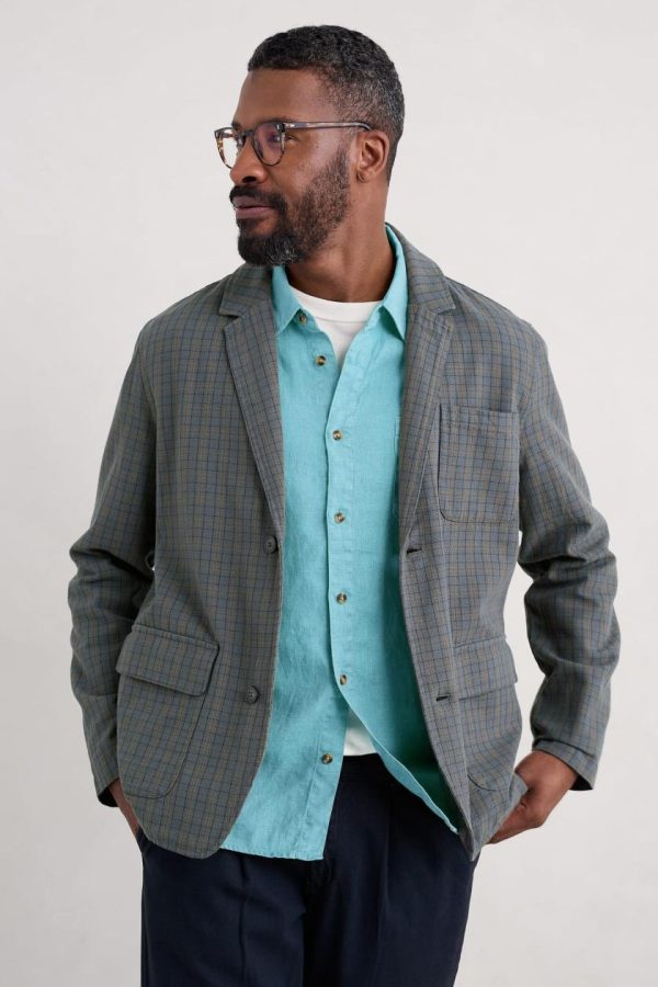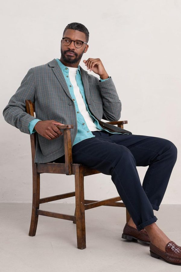 Our relaxed-fit blazer is just the thing for laid-back summer occasions. It’s made from woven organic cotton, and it’s half-lined to keep you cooler. Small yarn-dyed checks add a dash of character, while the notch lapels, 2-button fastening and flap pockets are a nod to traditional tailoring. The chest pocket and a gently curved hem are stylish finishing touches.