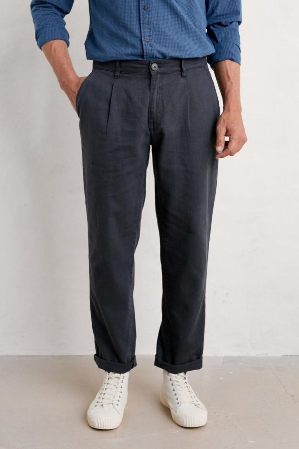 Woven from a breathable blend of organic cotton and linen, our men’s Helmsman Trousers have a relaxed tapered fit and pleat front, making them the perfect choice for days when comfort and style are key. We love these versatile trousers paired with our Tollgate Jacket.