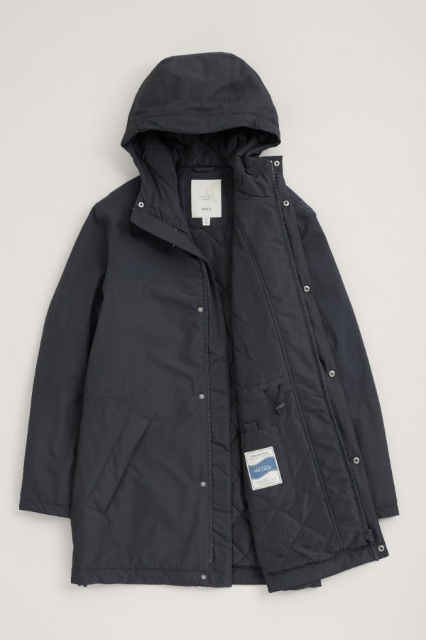 - Main garment: 100% Recycled Nylon. Body & hood lining: 100% Polyester. Sleeve lining: 100% Recycled Polyester. Pocket lining: 100% Recycled Polyester. Inner coat wadding: 100% Recycled Polyester