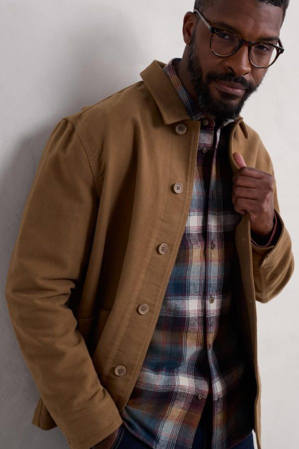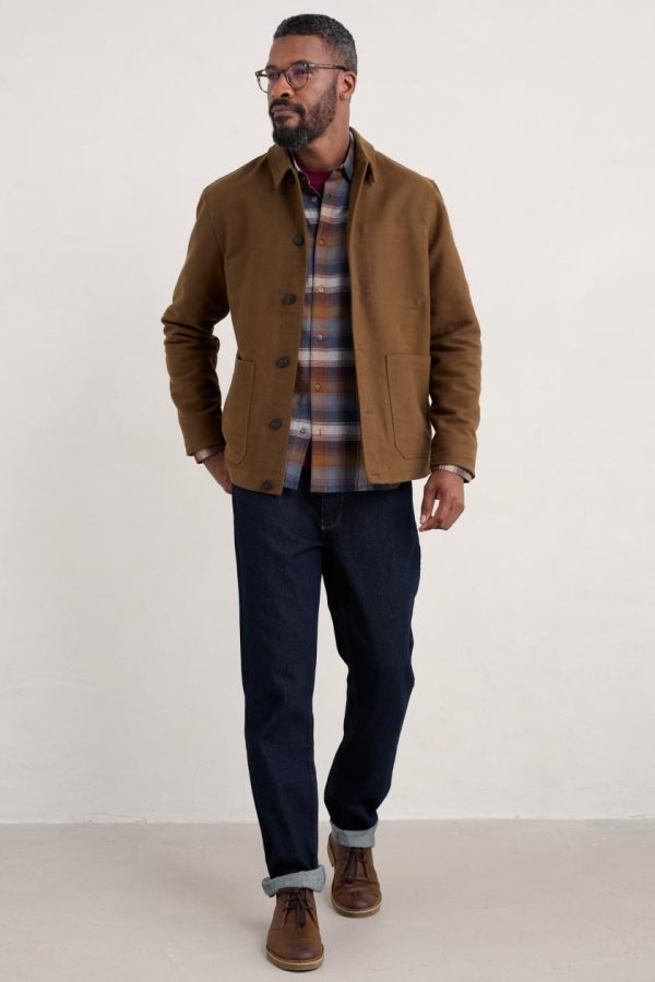 Our Ivo Jacket is inspired by traditional Cornish workwear. Utility-style details such as the large patch pockets and neat classic collar contrast with the soft brushed finish of the organic cotton. It fastens with a row of mock horn buttons, which match those on the adjustable cuffs. Inside, there’s a comfortable organic cotton lining and another useful pocket.