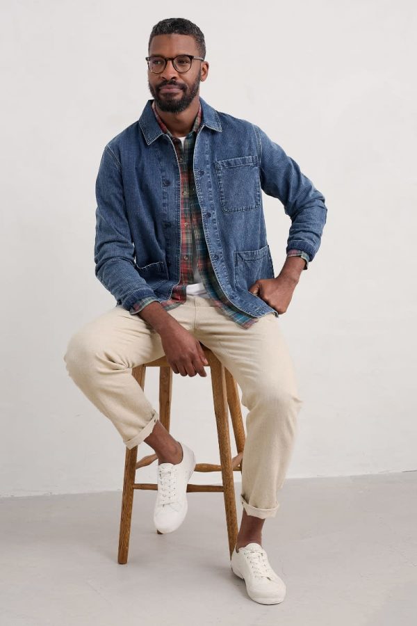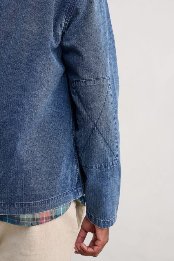 Our engineer-style denim work jacket has an easy-wearing, relaxed fit. It’s made from pure organic cotton with a herringbone texture, and fastens with a row of mock corozo buttons. We’ve given it time-honoured worker jacket details such as generous patch pockets and chest pockets, with a handy extra pocket inside. Internally reinforced fabric patches at the elbows add another practical feature.