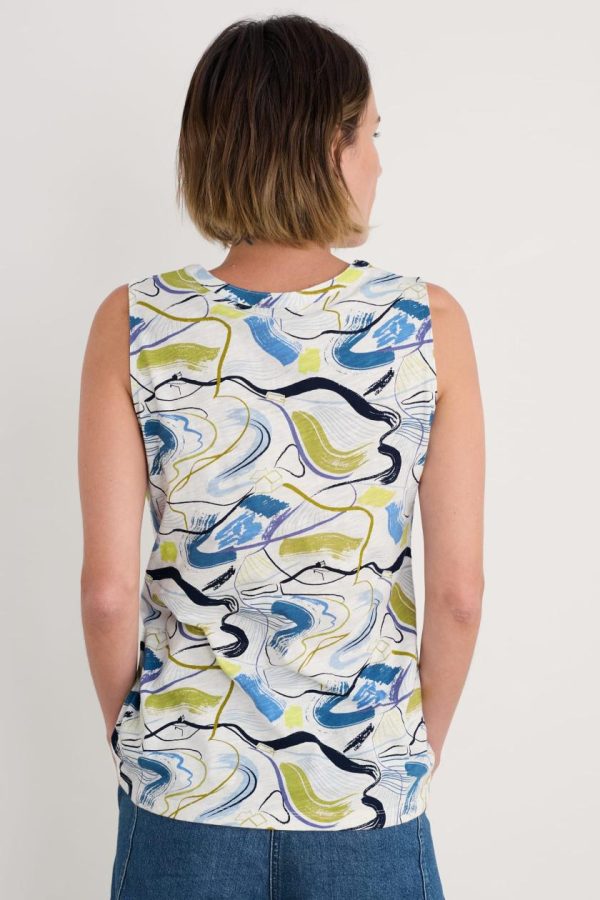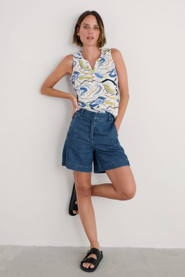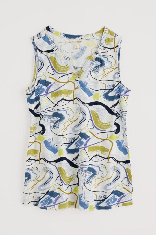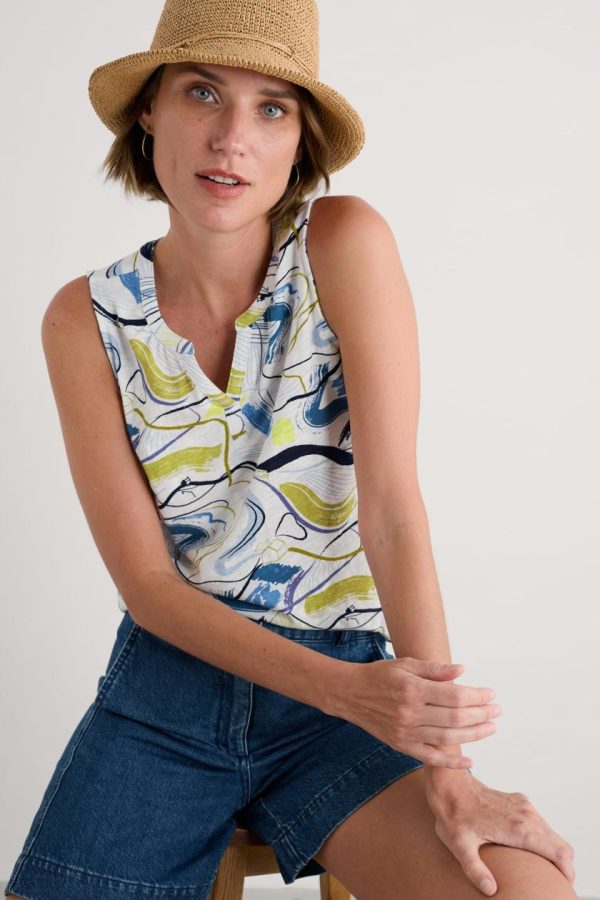 A relaxed summer vest made from soft organic cotton jersey with an easy shape that’s so comfortable on warm sunny days. The notch neck has a subtle collar placket and the prints are inspired by Cornish flora and fauna.