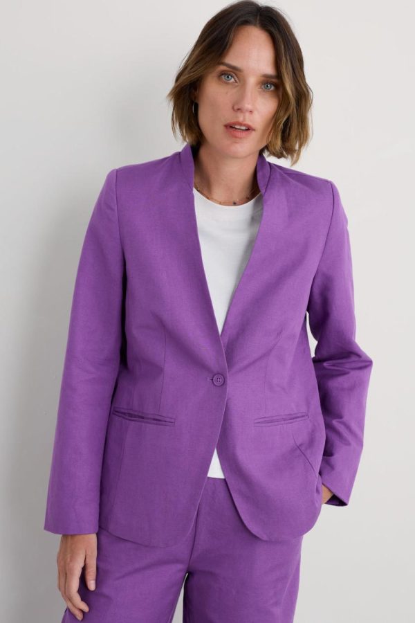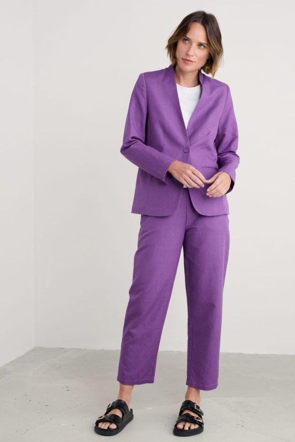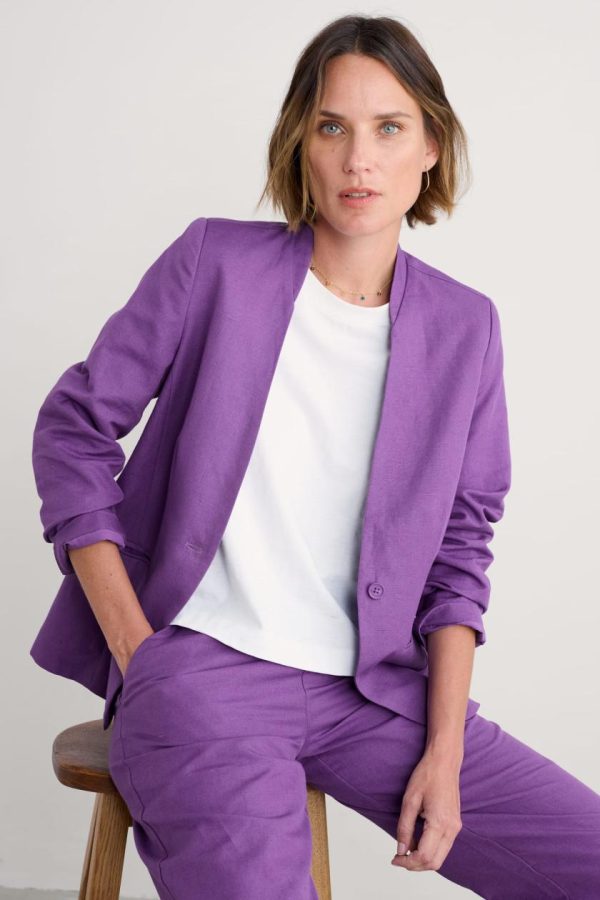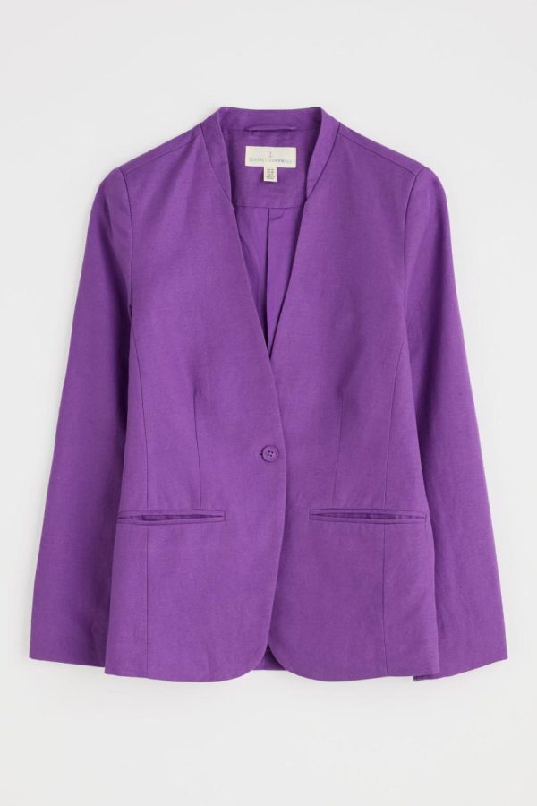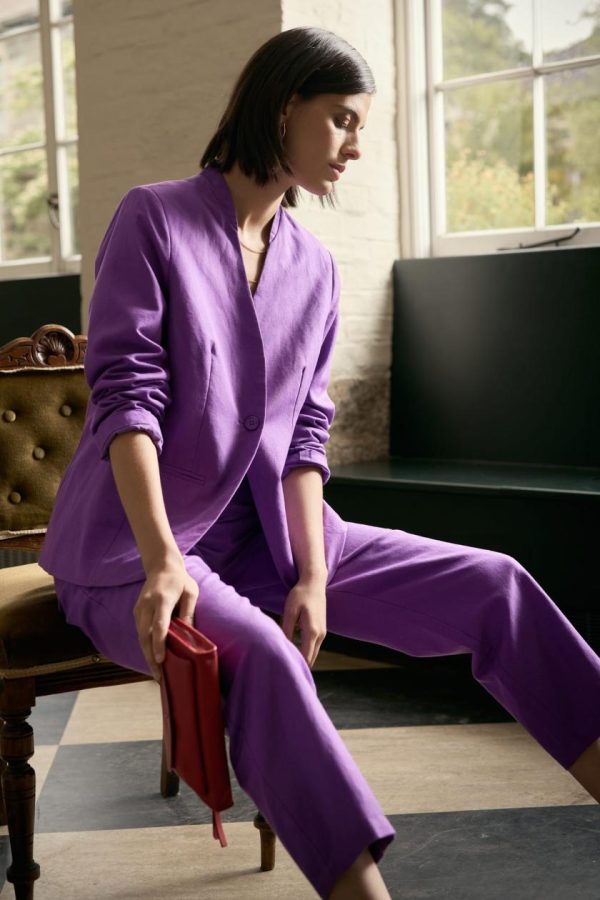 With clean lines and minimal details, the Quintet blazer is elegant in its simplicity. It’s crafted from a light and breathable blend of linen and organic cotton, lined with soft organic cotton. The V-neckline has no lapels, so we’ve added collar shaping at the neck so it sits neatly, while the princess seams create a semi-fitted shape. A single button fastening and a pair of double-welt pockets add smart finishing touches. A refined way to wear an extra layer.