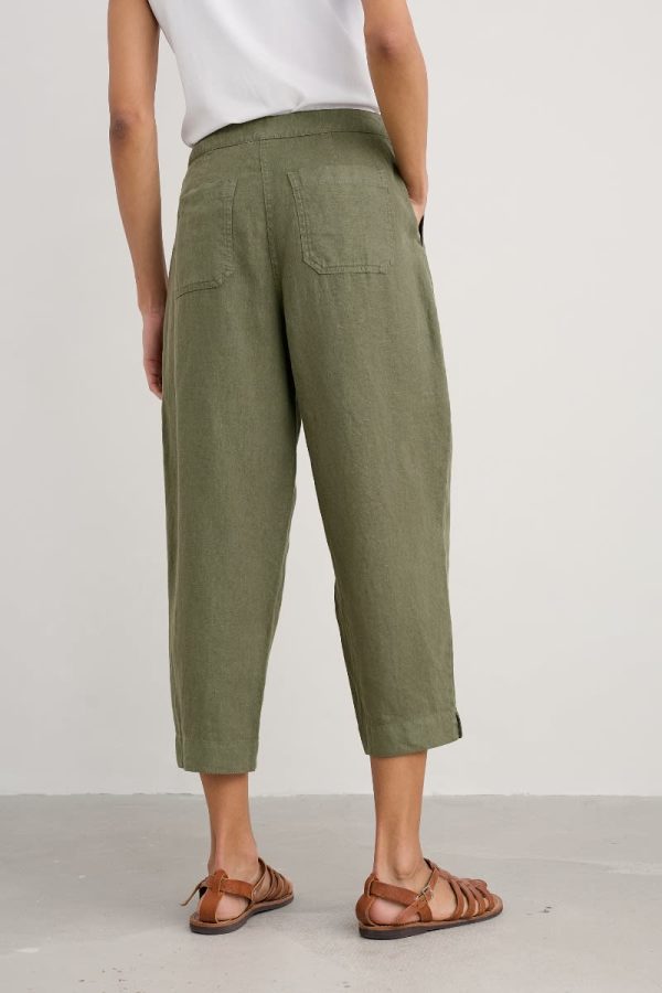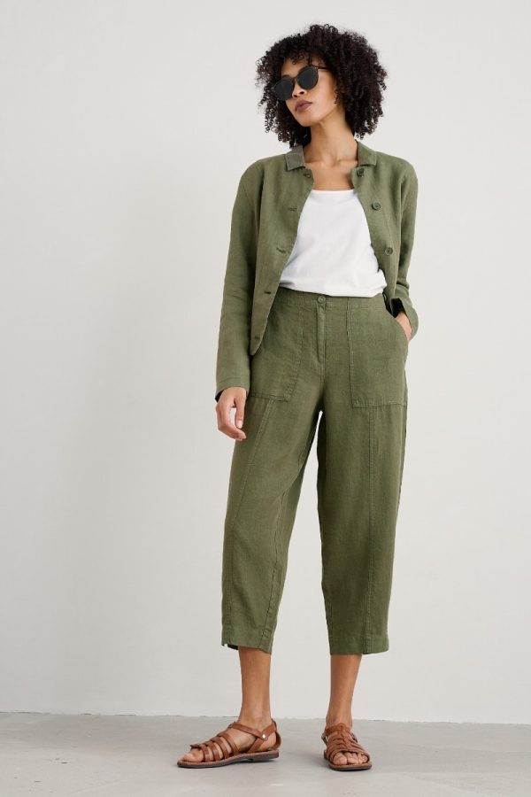 Meet your new favourite crops. These straight-leg trousers are made from naturally cool and breathable linen, and have been garment-dyed for a rich colour with a lived-in look. We’ve added thoughtful details like a grown-on waistband for a smooth finish, and little side splits in the hems. There are two large utility-style pockets to the front as well as two patch pockets at the back.