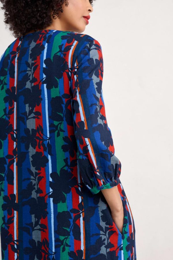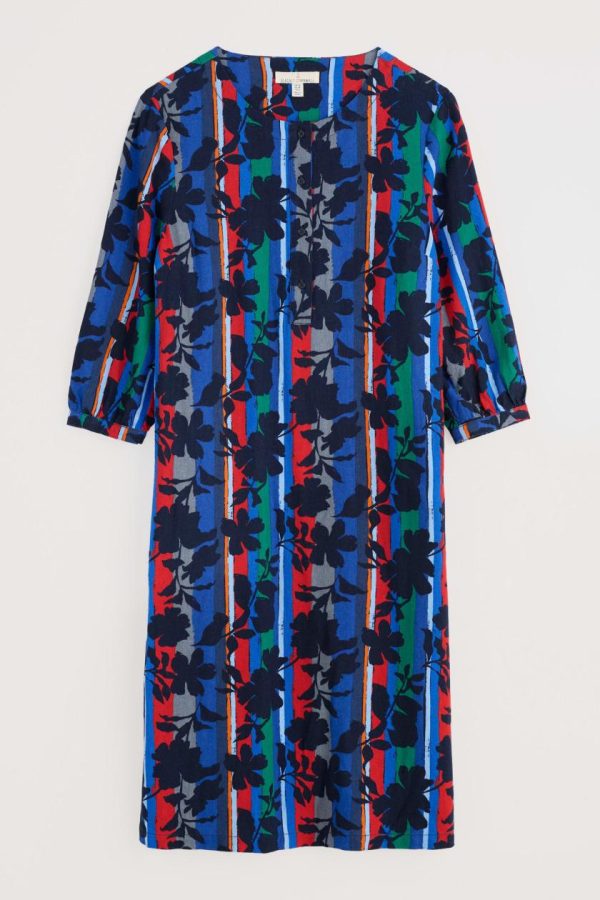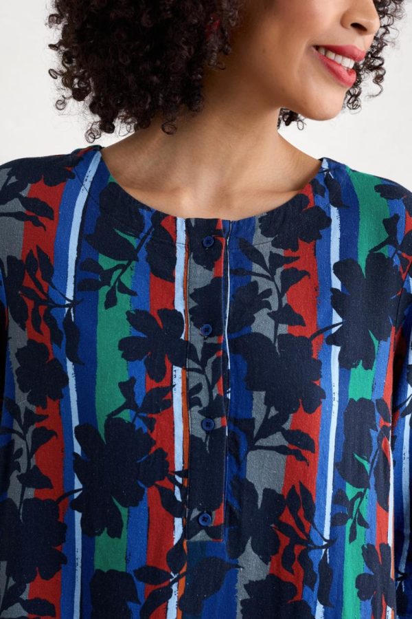 A dress in an airy linen blend with a button-up front and 3/4 length sleeves that have gentle volume at the cuff. The soft A-line shape has handy pockets and falls below the knee for stylish ease. Choose from artist-designed prints inspired by the Cornish landscape.