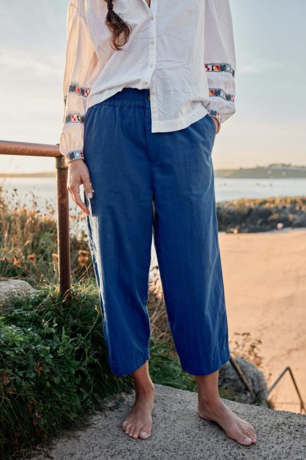 Meet our latest cropped trousers, the summer-ready Sequence Crops. They’re made from lightweight organic cotton poplin, with relaxed, tapered legs. The comfortable elasticated waistband features a mock fly detail with a button. We’ve finished the crops with a pair of front side pockets and patch pockets at the back.