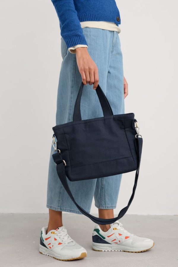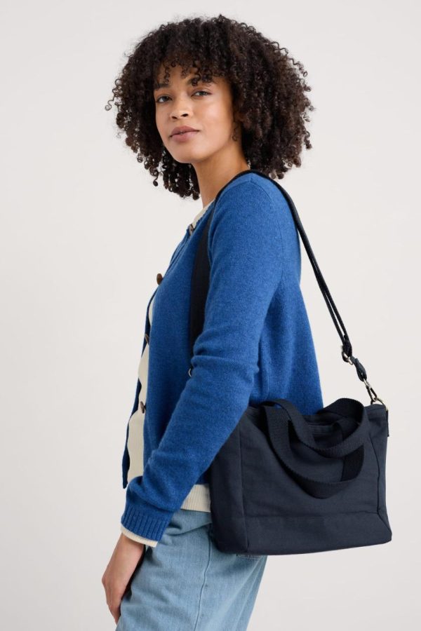 Made from organic cotton canvas in coastal colours, the Skyflow bag is comfy to carry and easy to style. You can wear it as a cross body bag, or remove the adjustable strap to use the matching handle. Inside there’s organic cotton lining and three useful slip pockets, while the main compartment fastens securely with a zip.