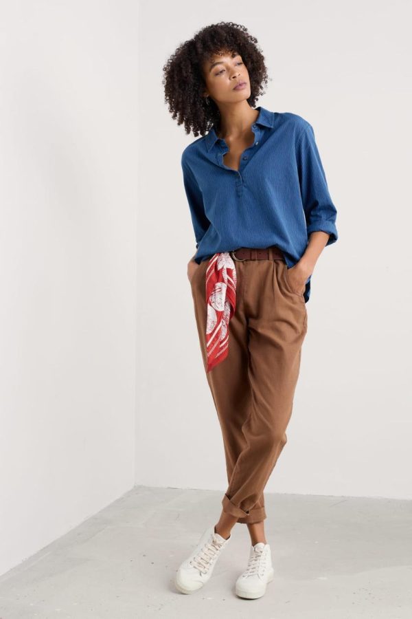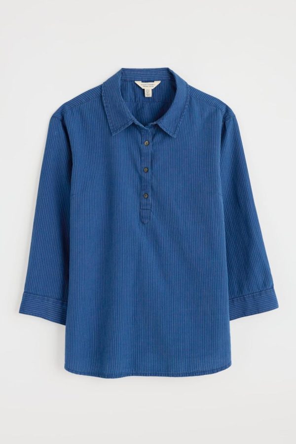 An easy-wearing shirt, with the collar and four-button placket adding a smart-casual feel. It’s made from pure woven organic cotton, which has been yarn-dyed for that wonderful depth of colour. The three quarter-length sleeves finish in button cuffs for a neat extra detail. A real wear-with-anything staple.