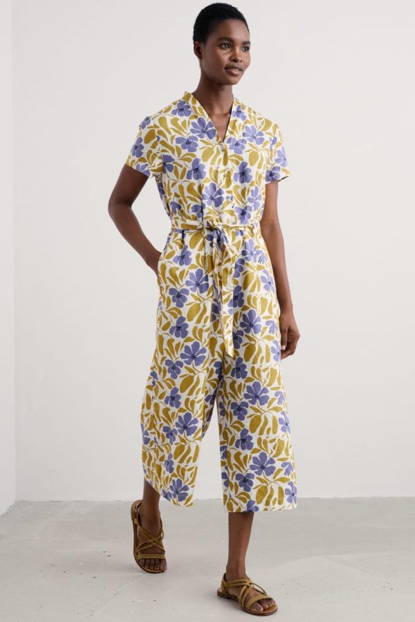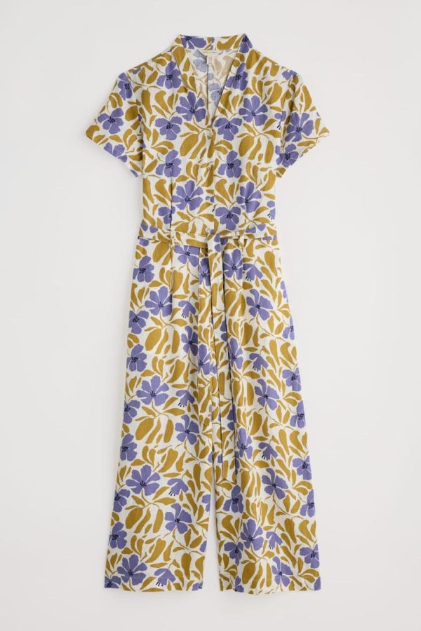 Stay cool on sunny days in this stylish jumpsuit, with its easy-to-wear fit-and-flare shape, soft V neck button front and short sleeves. It’s finished with side pockets, belt loops and a removable waist tie. Easy to dress up or down, it’ll be your go-to piece for summer.