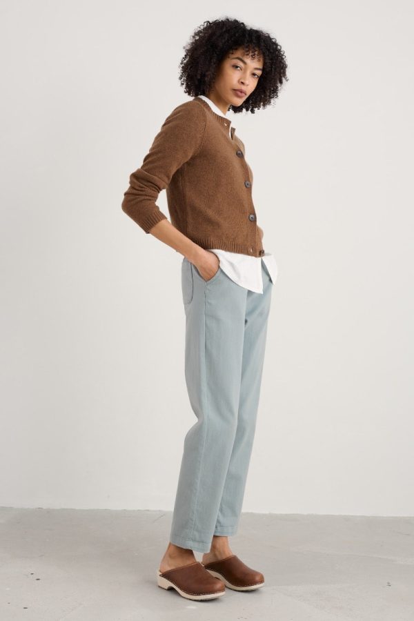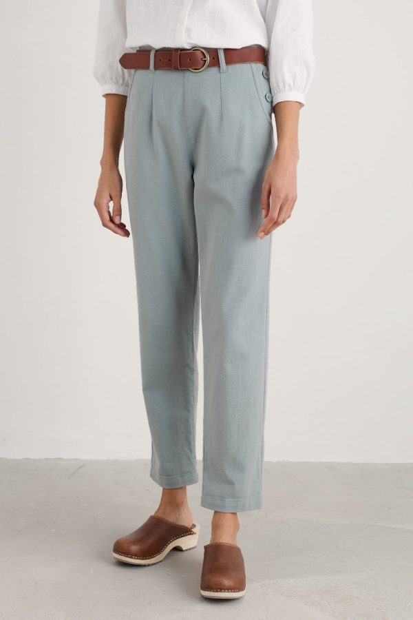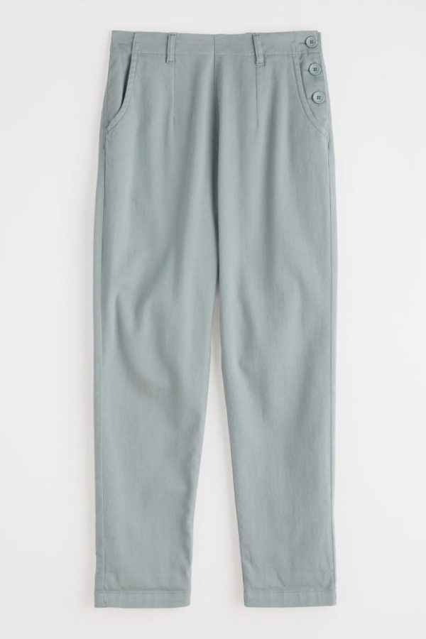 Our bestselling Waterdance Trousers are a year-round favourite, with a touch of stretch for ease of movement. They sit just below the natural waist and have a relaxed tapered shape, which looks great with boots or rolled up above sandals. They are styled with side fastening buttons and an elasticated back waistband for a comfortable fit and finished with two slanted side pockets and two back pockets.