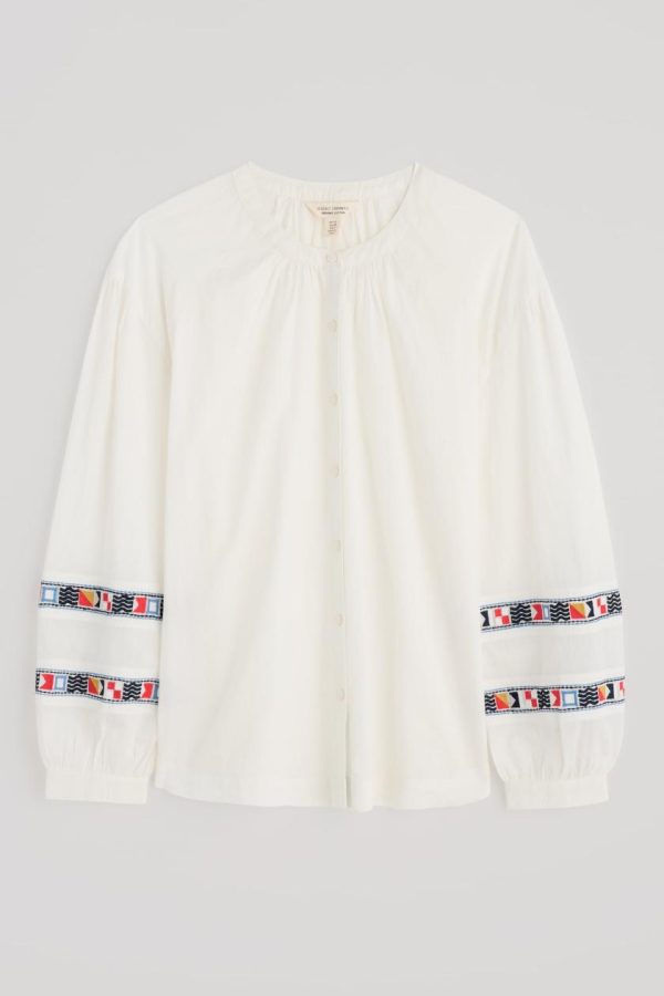 Our Weaving Sea shirt is crafted from soft and lightweight GOTS-certified organic cotton. Fine gathers at the round neckline and relaxed dropped shoulders give it a wonderfully easy feel. The buttons at the placket complement those on the cuffs. A lovely piece for effortless everyday wear.