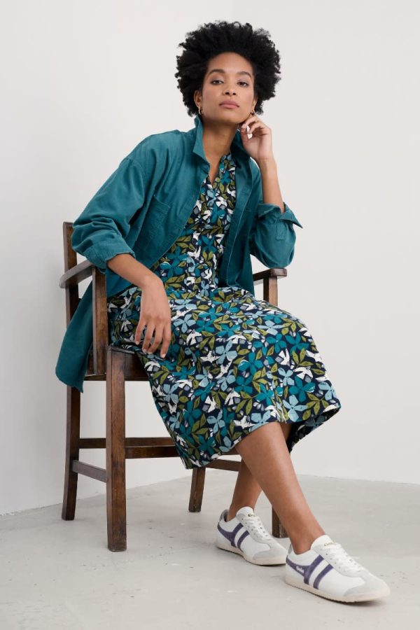A classic dress you’ll find so many ways to wear. The simple waisted shape and notch neckline are given a soft and supple structure with fine wales of organic cotton cord, which also gives a velvety texture to our deep, coastal colours.